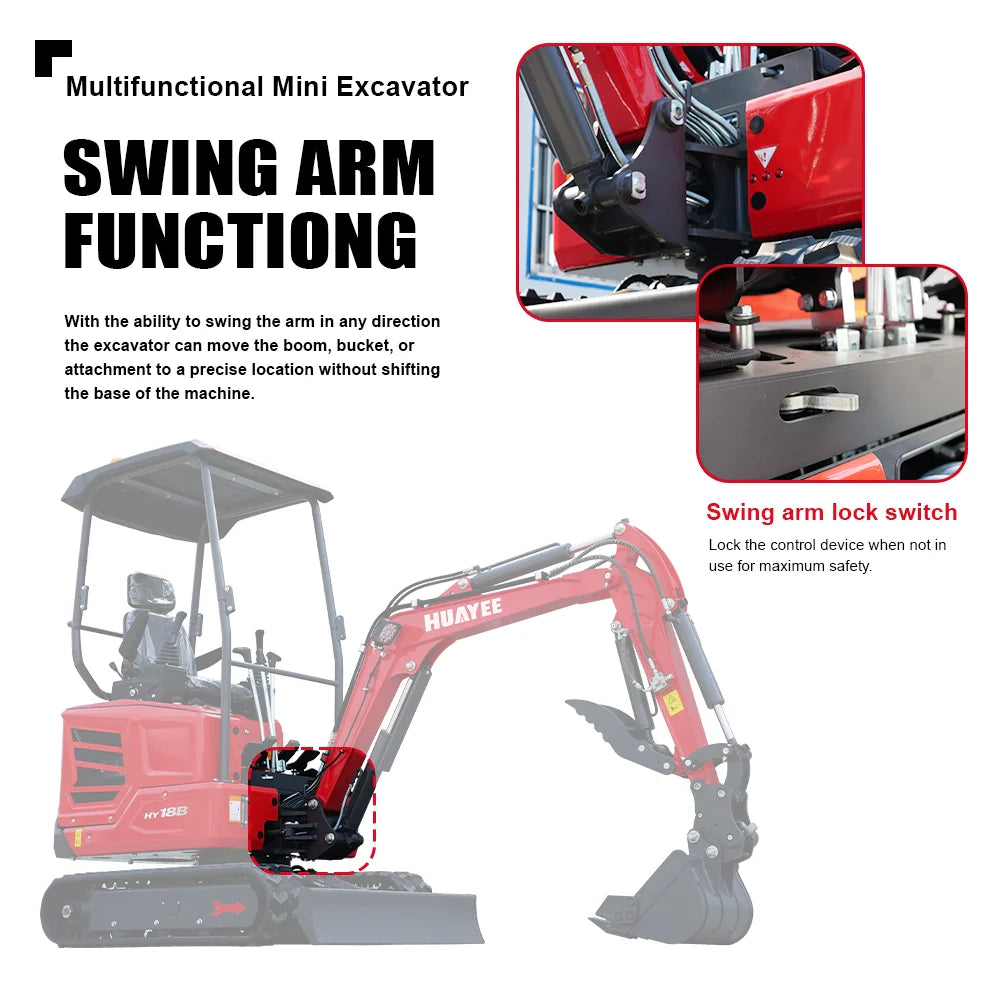 With its tight turning radius and small footprint, the HY18B is perfect for working in backyards, residential lots, and narrow construction zones. Whether you're trenching, grading, or clearing land, this mini excavator delivers serious results—without the bulk of a larger machine.